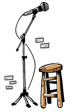 Ainda, as habilidades necessárias pra ser um stand-up comedian são diversas. É freqüentemente necessário que se assuma de forma solitária os papéis de escritor, editor, artista, promotor, produtor, e técnico simultaneamente. |